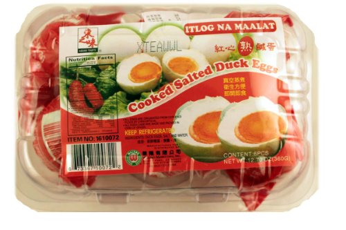 Salted duck egg locally referred to as known as itlog na maalat is a common feature on every Filipino dining table especially during breakfast. It can be eaten alone or with steamed rice or mixed in salad style with diced tomatoes and onions. Cooked Salted Duck Egg Itlog na Maalat 1 pack contains 6 pcs.