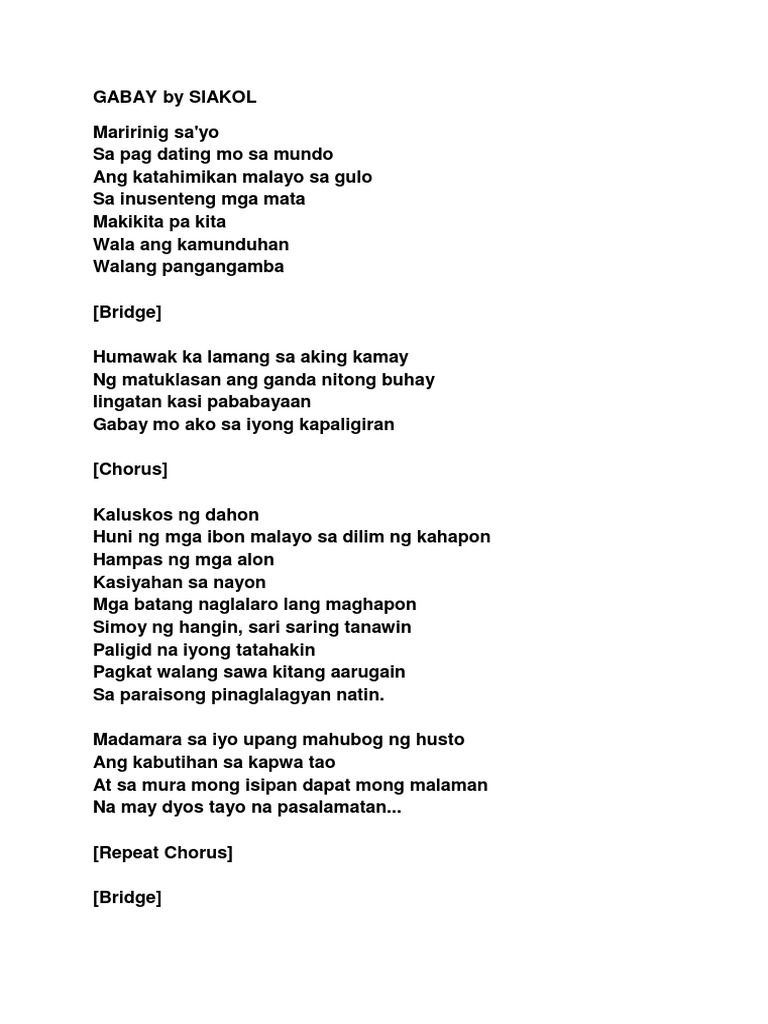 Tinitigasan na naman ako sa iyong ganda Dahil sa iyong ganda akoy napatanga Suso mo na napakalaki parang pakwan Bote ang yong katawan at pwet mong malaman Pwede kabang maikama pagkatapos mo dyan Pagkatapos maginuman magbabanatan Iietsa ka sa kama tuloy ang tuhogan Para kang tinapay titi ko ang palaman tinitigasan. Halika na pumikit limutin ang problema Hihintayin ang umaga Magpahinga panaginip ang ikaliligaya Darating din ang umaga Bastat tayoy magkasama Laging mayroong umagang kay ganda Pagsikat ng araw May dalang liwanag Sa ating pangarap ooh Haharapin natin Haharapin natin Pagsikat ng araw May dalang liwanag Gumising na Araw ng pag-asay narito na. Hali ka na kanta ta yo.