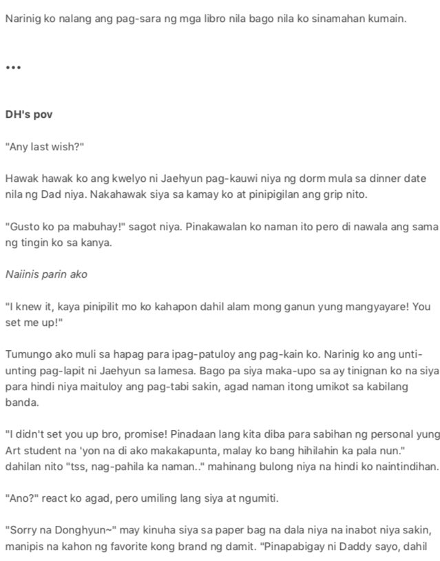 Minsan gusto natin makalipad makatakbo ng mabilis mapatigil ang oras para mas matagal ang play time mapa-vanish ang mga gulay sa plato natin nang hindi natin kinakain at kung anu-ano pa. Ayaw ko nang tratuhin ako nang ganito. At simula noong araw na iyon namatay na ang dating ako.