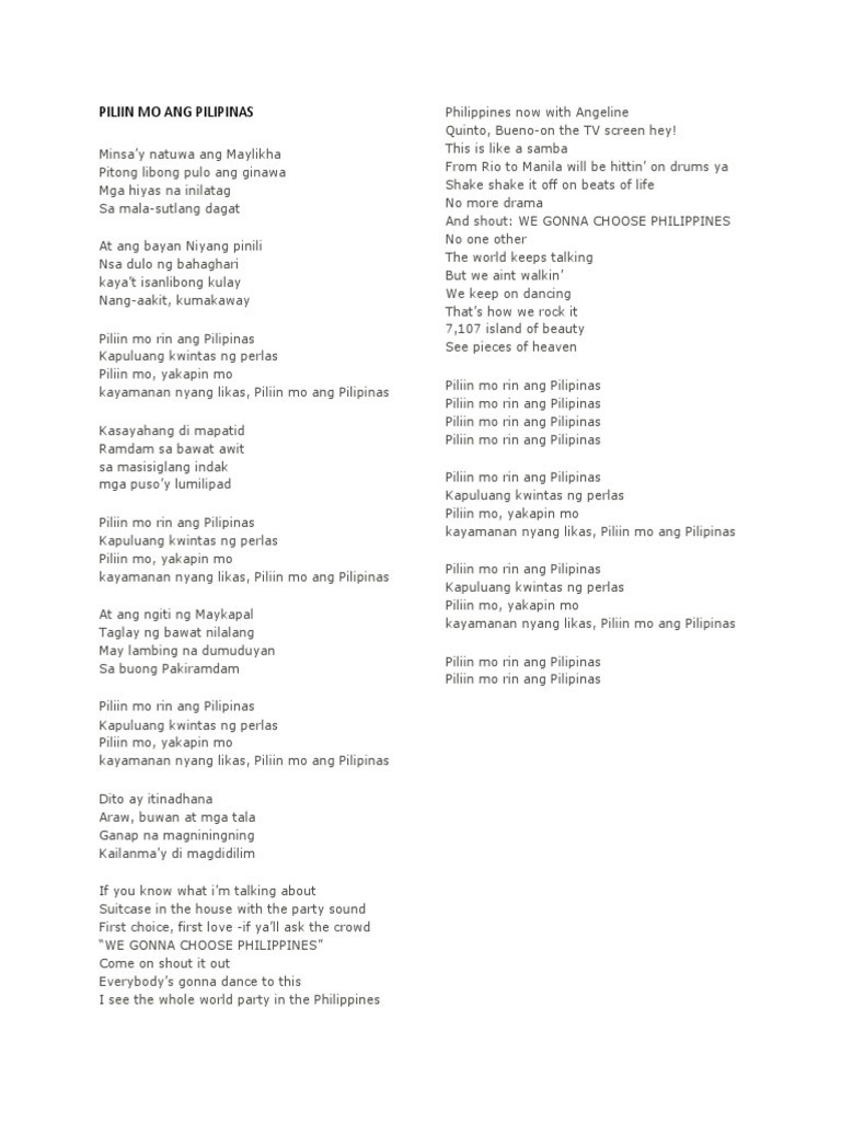 Piliin Mo Ang Pilipinas Docx Piliin Mo Ang Pilipinas Refrain Minsan Natuwa Ang May Likha Pitong Libong Pulo Ang Ginawa Mga Hiyas Na Inilatag Sa Course Hero